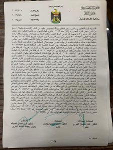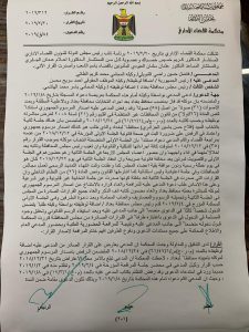 كتاب قضائي رسمي تسلم المكتب الإعلامي لمحافظ بغداد نسخة منه يظهر ” قرار المحكمة الإدارية ومصادقتها على شرعية جلسة مجلس محافظة بغداد والتي تمخض عنها التصويت للسيد فلاح الجزائري محافظا لبغداد خلفا للعطواني “.