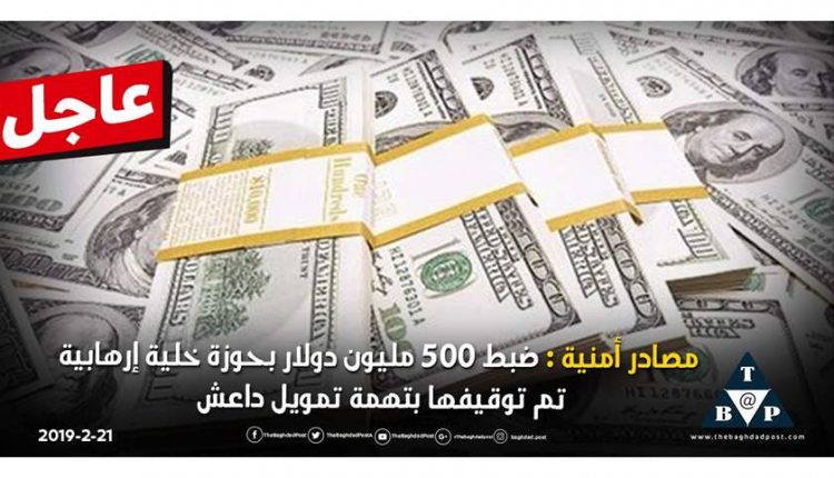 وقالت وسائل اعلامية انه “تم ضبط 500 مليون دولار بحوزة الخلية التي تم اعتقالها على يد السلطات العراقية بتهمة تمويل داعش”.