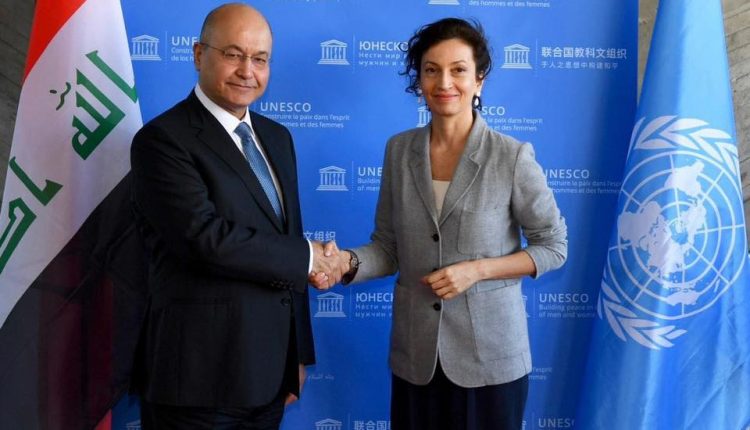 من جانبها أكدت أزولاي، استعداد المنظمة لمساندة العراق في المجالات الثقافية والتربوية واستعادة آثاره المنهوبة والحفاظ على ارثه التاريخي، ومشاركة كوادرها في التنقيب والاكتشاف، معربةً عن سرورها وسعادتها لزيارة سيادة الرئيس لليونسكو التي تعد الأولى لرئيس عراقي.