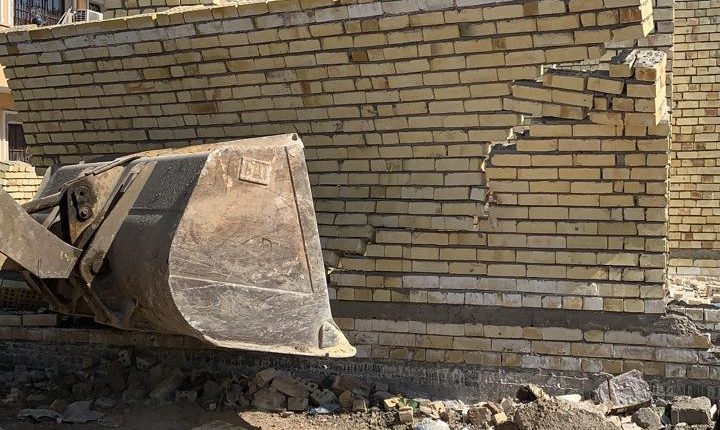 ملاكات دائرة بلدية المنصور باسناد مديرية حراسات وامن امانة بغداد نفذت حمل كبرى لازالة التجاوزات بحي العدل تضمنت هدم دور متجاوزة في مراحل البناء الاولي .