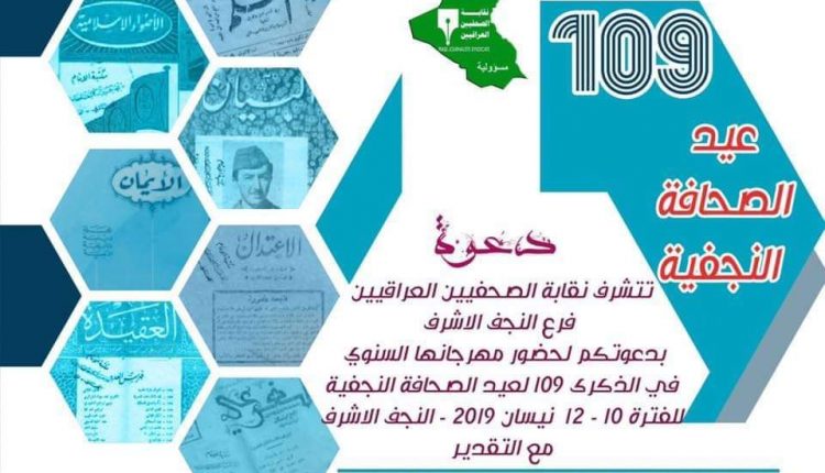 وقال رئيس فرع نقابة الصحفيين في النجف الاشرف أياد الجبوري ان أحتفاءنا بالعيد السنوي للصحافة النجفية يجسد الأرتباط الحقيقي بأرثنا الصحفي الذي نفتخر به ليمتد ليومنا هذا ويؤكد السير على النهج الكبير الذي خطه الصحفيين الكبار، مؤكدا إكمال الأستعدادات النهائية للمهرجان الذي سيقام للفترة (١٠-١٢) نيسان تحت شعار (الصحافة النجفية..ارث وابداع) وسيتضمن فعاليات ثقافية وفنية ومعارض تعرض فيها ما مرت به الصحافة النجفية طيلة السنوات الماضية.