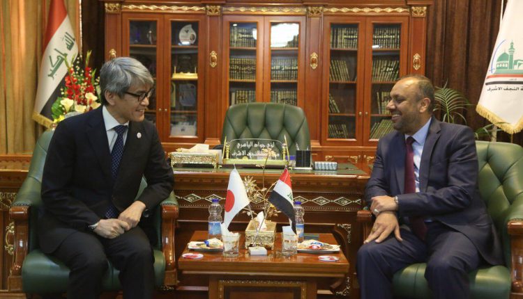 استقبل محافظ النجف الاشرف السيد لؤي الياسري في مكتبه سفير اليابان في العراق السيد ناوفومي هاشيموتو حيث جرى خلال اللقاء مناقشة ملفات التعاون المشترك ومشاركة الشركات اليابانية الكبرى في الاستثمار في النجف الاشرف.