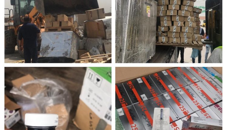 اعلنت السلطات الكمركية في مديرية كمرك الشحن الجوي بالعاصمة بغداد اليوم الثلاثاء عن اتلافها لشحنة أدوية بشرية و مواد تجميل لكونها تالفة وغير صالحة للأستهلاك .