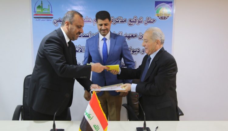 وقع محافظ النجف الاشرف السيد لؤي الياسري مع عميد معهد العلمين للدراسات العليا للتعاون المشترك لتخصيص عدد من المقاعد الدراسية لموظفي ديوان المحافظة لحصولهم على الشهادات العليا والاستفادة في تطوير العمل الإداري والوظيفي فيها.