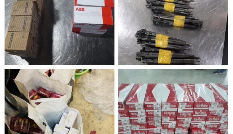 أعلنت السلطات الكمركية في كمرك مطار بغداد الدولي اليوم السبت عن حجزها كمية من قطع غيار سيارات وقطع تأسيسات كهربائية مخالفة وسكائر ومعسل ممنوعه و بكميات تجارية وردت دون أوراق رسمية.