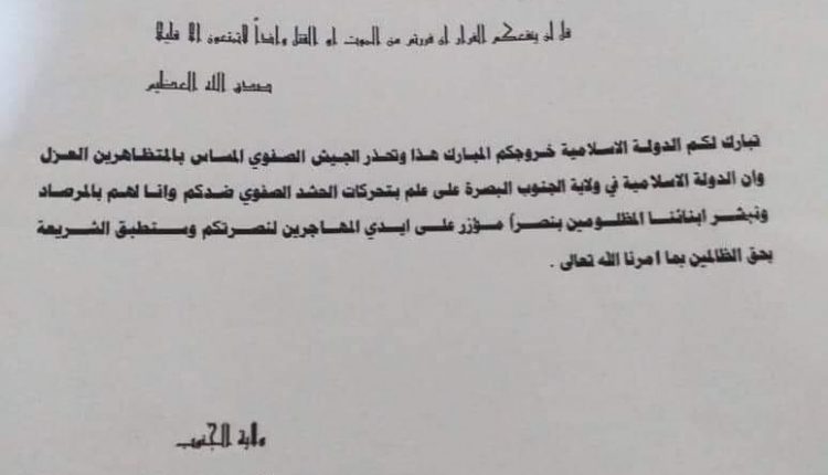 وكانت قيادة عمليات البصرة قد اعلنت عبر المربد في وقت سابق اليوم حالة الإنذار على خلفية العثور على منشورات يشتبه بصلتها بتنظيم داعش الارهابي في سوق قضاء ابي الخصيب واخرى في قضاء الزبير.