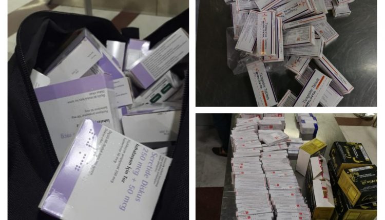 حجزت السلطات الكمركية في كمرك مطار بغداد الدولي اليوم السبت كمية من الادوية البشرية مختلفة الأنواع هندية المنشأ كانت بحوزة مسافر يروم ادخالها للبلد دون استحصال الموافقات الرسمية لها .