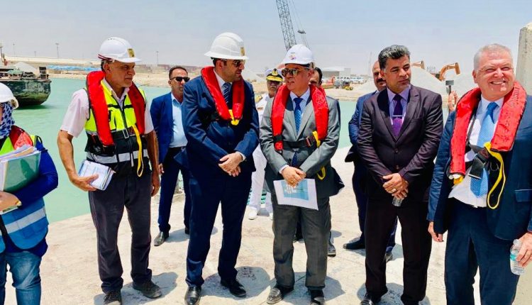 وزير_النقل يدشن تنزيل القطعه الأولى من الجدار الكونكريتية لإنشاء ثلاثة أرصفة في حوض الاستدارة لميناء ام قصر الشمالي ..
