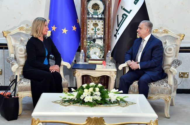 من جهتها أكّدت موغريني أنَّ الاتحاد الأوروبيّ ماضٍ بالعمل مع العراق لإنجاز الأهداف التي حدَّدها مُؤتمَر إعادة الإعمار الذي عُقِدَ في الكويت في شباط ٢٠١٨؛ من أجل توفير مستقبل أفضل لشعب العراق، مُوضِحة: ساهم الاتحاد الأوروبيّ بـ١.٢ مليار يورو في المساعدات الإنسانيّة، والاستقرار، والتنمية، والتعاون الأمنيّ منذ عام ٢٠١٤، هو دليل على التزامه طويل الأمد بالشراكة الستراتيجيّة مع العراق.