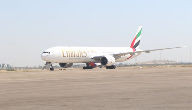 بينت ادارة مطار بغداد الدولي ، اليوم الأحد ، استقبال الرحلة لطائرة بوينغ المميزة الB777-300 game changer التابعة لشركة طيران الامارات الناقل الوطني الإماراتي ،