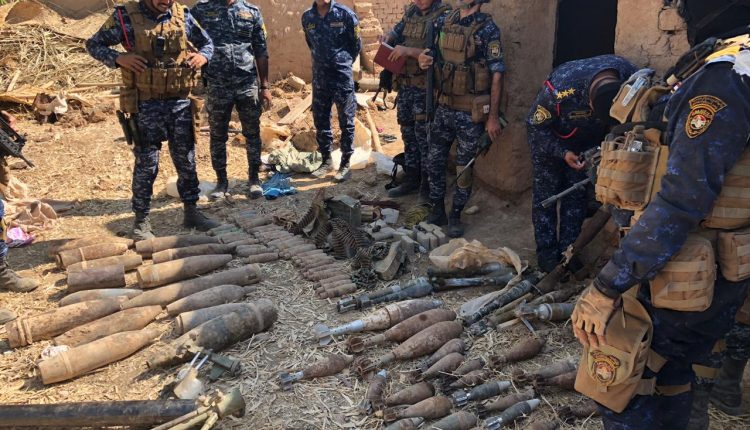 الفرقة الآلية في الشرطة الاتحادية تعثر على كدس يحتوي اكثر من مئة مقذوف وعبوة ناسفة في قرية الجوالة في ناحية الرياض جنوب محافظة كركوك