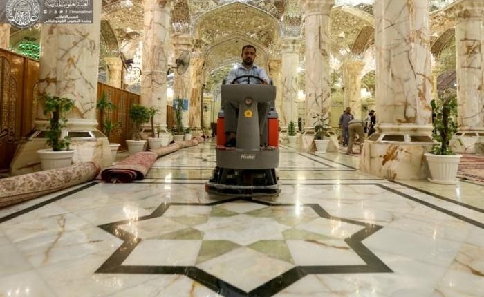 وأضاف ” ان استخدام الآليات الحديثة كان له فارق كبير من حيث السرعة في تنفيذ الأعمال الخاصة بتنظيف باحة الصحن العلوي المطهر وفي محيطه, حيث ان العمل كان في الفترة السابقة يتطلب جهودا كبيرة بالإضافة إلى الدقة كون المرمر الموجود في داخل الحرم المطهر يتطلب دقة في العمل ومراعاة عدم تأثره بالمواد الكيماوية المستخدمة في التنظيف”.