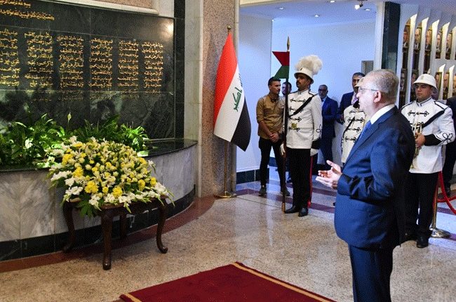 ووضع الوزير إكليلاً من الزُهُور على النصب التذكاريّ الذي أشادته الوزارة لهذا الحادث الأليم، وألقى كلمة أبَّنَ فيها الشهداء، مُذكّراً بالدور الفاعل للدبلوماسيّة العراقـيّة في مُحاربة الإرهاب.