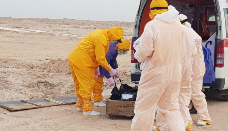 34 متوفي بسبب جائحة كورونا تم دفنهم في مقبرة وادي السلام الجديدة بالنجف الاشرف من قبل متطوعي فرقة الامام علي (ع) القتالية حشد شعبي.
