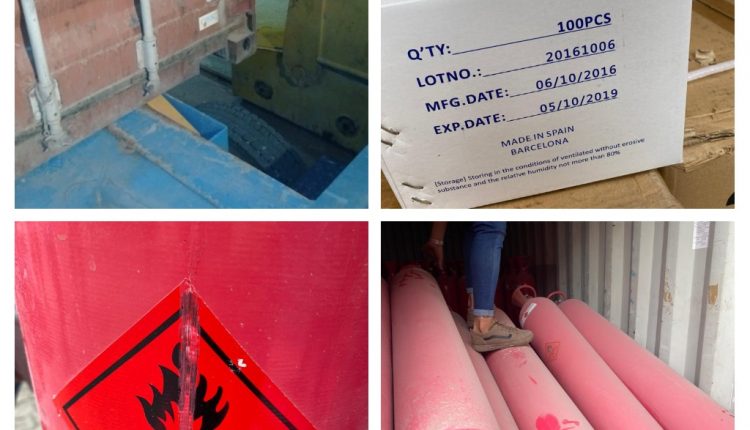 حيث تم فتح ( ٧ )حاويات في مركز كمرك ام قصر الشمالي و بالتعاون مع الجهات الساندة العاملة في المنفذ على الأرصفة رقم ( ١١ / ٢٠ ) فكانت حاوية تحتوي سكائر مستوردة وردت بدون اجازة استيراد و لا تحمل علامة تحذيرية او تاريخ انتاج و انتهاء صلاحية ،و ( ٤ حاويات ) تحتوي على مواد غذائية منتهية الصلاحية و حاوية تحتوي على مستلزمات طبية منتهية الصلاحية وكانت الاخيرة تحتوي على مادة ذات استخدام مزدوج ( غاز الهايدروجين ) منتهي الصلاحية .