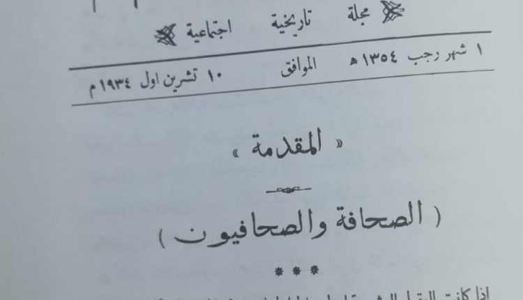 ومضة من الصحافة النجفية ( الصحافة و الصحفيون) مجلة المصباح ١٩٣٤ م أنموذجآ