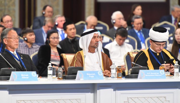 طرح أحمد بن محمد الجروان رئيس المجلس العالمي للتسامح والسلام رئيس وفد المجلس الى مؤتمر زعماء الأديان العالمية والتقليدية في مدينة نور سلطان – عاصمة كازخستان خارطة طريق متكاملة لنشر قيم التسامح ومكافحة الارهاب .