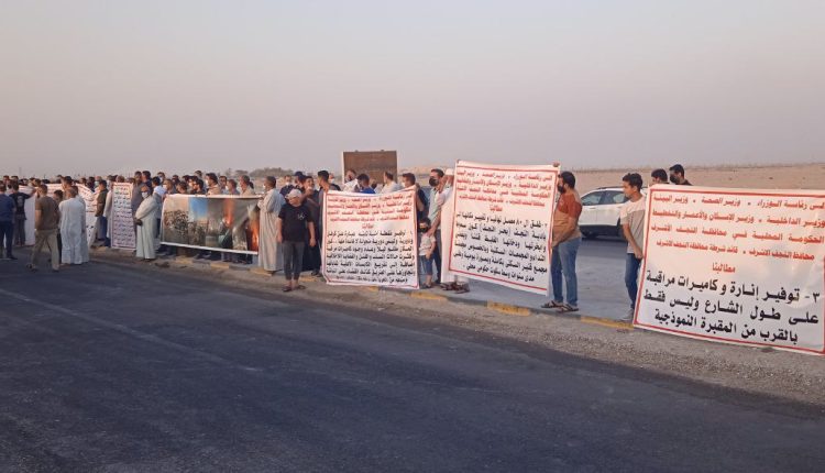 وقال السيد منير البغدادي أحد المتظاهرين: بحسب الفقرة ثالثا من المادة 497 من قانون العقوبات العراقي: يجرم كل شخص يعمل على التسبب عمداً او اهمالاً في تسريب الغازات او الابخرة او الادخنة او المياه القذرة وغير ذلك من المواد التي من شأنها إيذاء الناس او مضايقتهم، وهذا ما يحدث منذ سنوات شمال النجف الاشرف بسبب مكب النفايات اللاصحي ومعامل الجص غير القانونية، لذلك نطالب المسؤولين في المحافظة بتفعيل هذا القانون بشكل فوري.