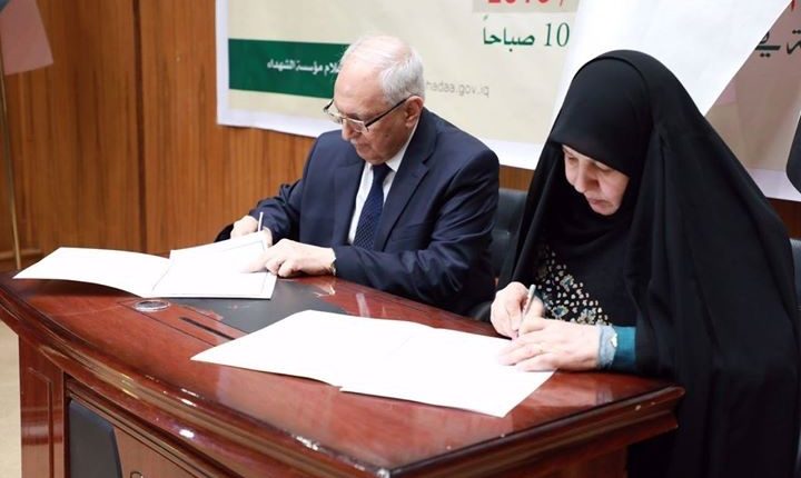 جاء ذلك خلال الندوة العلمية التي اقامتها مؤسسة الشهداء بتاريخ 23 / تموز الحالي لطلبة الدراسات العليا وبحضور رئيسة مؤسسة الشهداء السيدة ناجحة عبد الامير الشمري ووزيرالتعليم العالي الدكتور عبد الرزاق العيسى وعدد كبير من مسؤولي المؤسسة وتم خلالها توقيع بروتوكول تفاهم يخدم الطلبة من ذوي الشهداء .