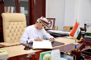 وفي نهاية اللقاء قدم الدكتور ابر اهيم بحر العلوم المشرف العام هدية تذكارية الى رئيس بعثة يونامي في العراق.