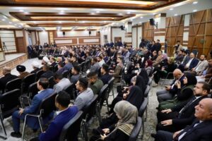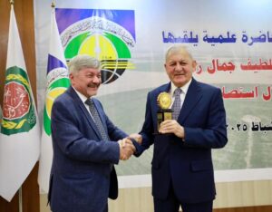 والقى فخامة الرئيس عبد اللطيف احمد رشيد محاضرة حملت عنوان ” نحو ارض اكثر استقرارا من خلال استصلاح الأراضي” تحدث خلالها عن ازمة المياه في العراق، وأسبابها، واليات مواجهتها، مشددا على ضرورة بناء السدود لمنع هدر المياه، والتواصل مع دول الجوار التي تنبع منها المياه، وضرورة زيادة نشاط وسائل الاعلام لنشر الوعي البيئي. اجاب بعدها فخامة الرئيس على اسئلة طلبة الدراسات العليا في المعهد والحاضرين في اللقاء.