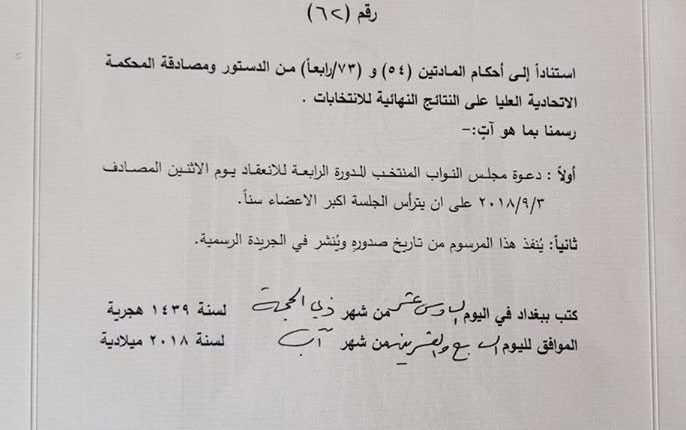 رئيس الجمهورية يدعو مجلس النواب المنتخب للدورة الرابعة للانعقاد يوم الاثنين 3/9/2018 , على ان يترأس الجلسة اكبر الاعضاء سناً أخبار في أغسطس 27, 2018 0 181 شارك 0 181 شارك