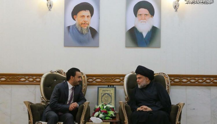 الصدر يستقبل السيد محمد الحلبوسي رئيس مجلس النواب العراقي ونائبيه في النجف الأشرف