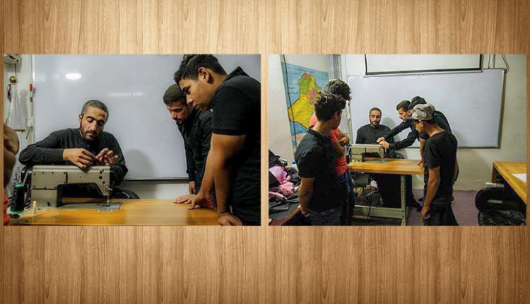 وقال احد مدربي البرنامج محمد الفتلاوي “بدأنا المرحلة الاولى من التدريب على اساسيات تعليم الخياطة وفصال الملابس الرجالية وسنستمر لمدة اسبوعين”.
