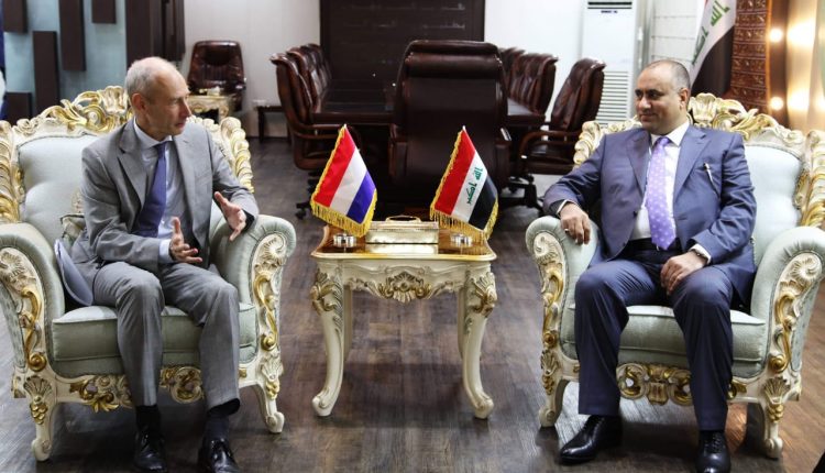 استقبل السيد وزير الزراعة الدكتور صالح حسين الحسني السفير الهولندي في العراق السيد ماتيس ولترز بمكتبه في مقر الوزارة , حيث جرى خلال اللقاء بحث آفاق التعاون المشترك بين البلدين في المجال الزراعي، وبحضور الوكيل الفني للوزارة الدكتور مهدي ضمد القيسي. وأكد الحسني خلال اللقاء استعداد الوزارة لتوفير أكثر من (50) الف دونم من الاراضي الزراعية للشركات الهولندية لدخول مجال الاستثمار في العراق، كما تسعى وزارة الزراعة إلى زيادة آفاق التعاون المشترك بين العراق وهولندا في المجال الزراعي والثروة الحيوانية فضلا عن تربية الأبقار والمواشي، وتطوير الغابات ومكافحة التصحر. كما بحث الطرفان الخطة الزراعية للموسم الحالي بعد كمية الامطار الكبيرة هذا الموسم وتجاوز التاثيرات السلبية لشحة المياه في الاشهر السابقة , والاستفادة من الخبرات الهولندية في هذا المجال وتطوير القطاع الزراعي في العراق وتقديم الدعم للفلاحين والمزارعين وتنمية قدراتهم، وتوسيع مجال التسويق للمنتجات والمحاصيل الزراعية والحيوانية، ودخول الشركات الهولندية في مجال الاستثمار في القطاع الخاص، وتوفير التقنيات الحديثة من مكننة ومنظومات ري ومكافحة التصحر. من جانبه أكد السفير الهولندي سعادته باللقاء والتعاون مع وزارة الزراعة، مشيدا بالإمكانيات والقدرات المتوفرة لدى الوزارة لزيادة التعاون بين البلدين وتطوير القطاع الزراعي في العراق، وسعي الحكومة الهولندية إلى التعاون مع دول جوار العراق ودول الاتحاد الأوربي والاطراف الصديقة لحل مشكلة نقص الواردات المائية إلى العراق.