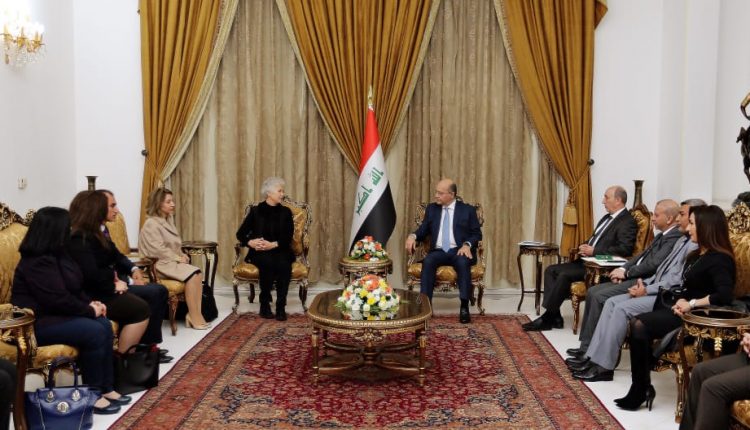 وأشاد رئيس الجمهورية بالجهود الكبيرة التي يبذلها الفريق الوطني، مؤكدا دعم سيادته واهتمامه بقضايا المرأة وتمكينها من أداء رسالتها التاريخية، مثمناً تضحياتها الجسام التي قدمتها على مختلف المراحل والحقب الزمنية خاصة مقاومتها لقوى الارهاب وصبرها وصمودها بوجه الفكر الظلامي لعصابات داعش، داعيا الى “وضع خطط وطنية للنهوض بواقع المرأة العراقية وبما يتلائم مع مكانتها الكبيرة داخل المجتمع”، لافتا سيادته إلى الجهود الحثيثة التي قام بها العراق بمساعدة المنظمات الدولية، لاسيما الأمم المتحدة، والتي تصب في رسم مستقبل مشرق لها.ق
