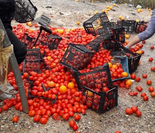 الكمارك اتلاف محصولي الطماطة والبرتقال المستورد في منفذ الشيب الحدودي